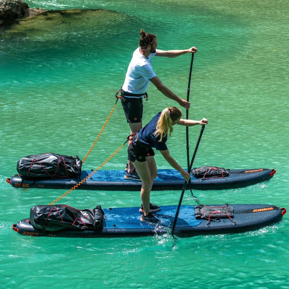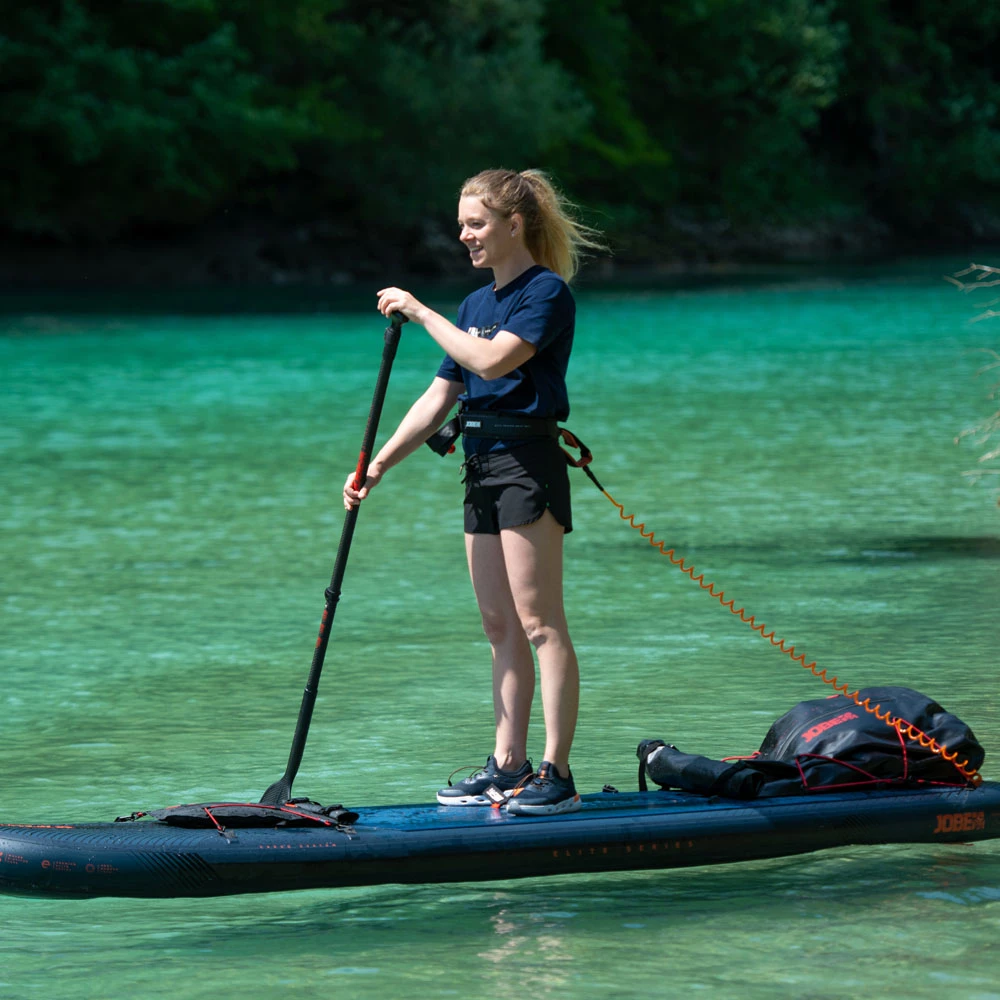 Vous pouvez attacher votre leash de SUP à cette ceinture. L’avantage est que vos chevilles restent libres et que la leash est donc attachée à votre hanche. Voulez-vous retirer rapidement la ceinture ? Tirez sur la balle orange et la ceinture se détachera.