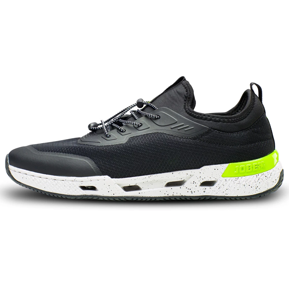 La sneaker Jobe Discover a été renouvelée ! Elle est encore plus fonctionnelle que son prédécesseuse. Ces chaussures de sports nautiques confortables ont l’apparence et la sensation d’une sneaker ordinaire, mais sont 100% résistantes à l’eau. Les chaussures sont fabriquées à partir d’un matériau léger à séchage rapide. Vous avez beaucoup d’adhérence avec les chaussures et une semelle solide mais souple pour que vous puissiez facilement marcher dessus. Grâce au systÚme de drainage, l’eau qui pénÚtre dans vos chaussures s’évacue également immédiatement. Ainsi, vos pieds ne resteront pas mouillés longtemps. La chaussure est pourvue d’un lacet élastique qui vous permet de la serrer.