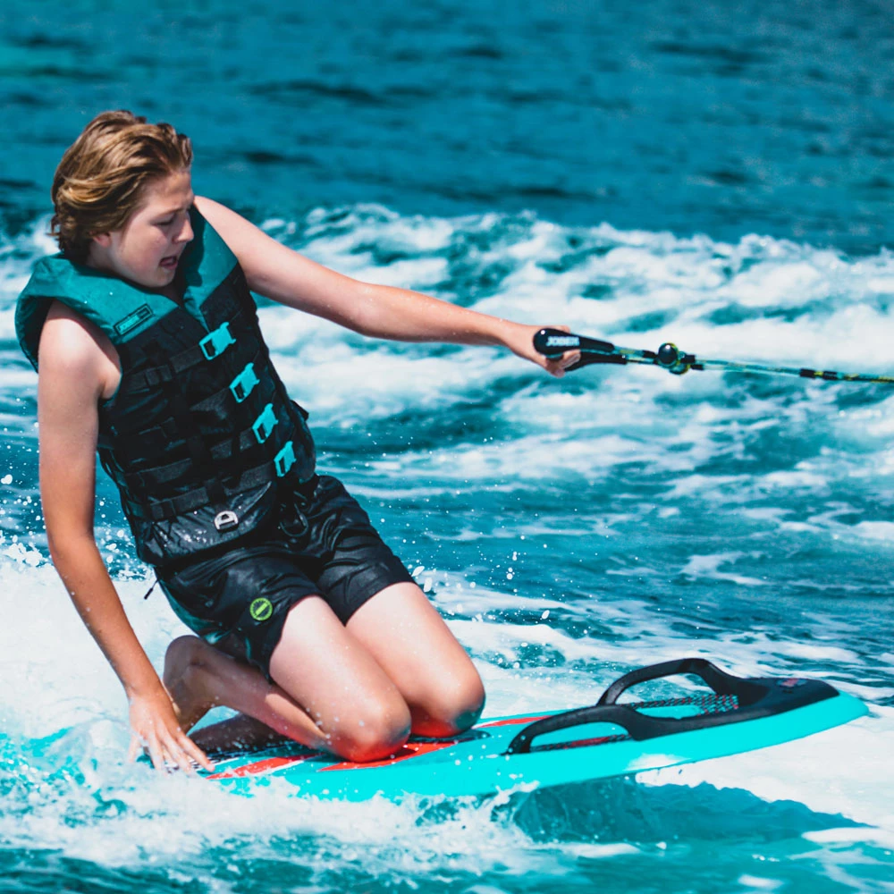 Le Stimmel est le petit frÚre de l’Omnia. TrÚs enthousiasmé par l’Omnia, mais juste un peu trop cher ? Alors le Stimmel est le bon choix. Cette planche multi position Jobe est fabriquée en plastique sans soudure rotoformé. Cela rend la planche assez légÚre (7 kg), mais toujours robuste et résistante aux chocs. Tout comme l’Omnia, la planche Stimmel est adaptée pour le kneeboard, le ski nautique et le wakesurf. Le stimmel est pourvu d’une couche antidérapante confortable sur le dessus. à l’avant se trouve une poignée avec un crochet de remorquage intégré, sur laquelle vous pouvez facilement accrocher la bobine de la poignée du crochet de remorquage Jobe derriÚre. Vous ne savez pas si vous devriez opter pour un kneeboard ou un wakeboard ? Optez pour le Stimmel !