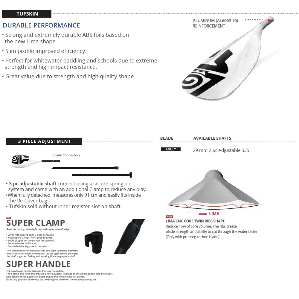 La pagaie sup Starboard Lima Tufskin blanc 2 piÚces est une excellente pagaie avec la particularité : une rigidité élevée et un poids réduit.